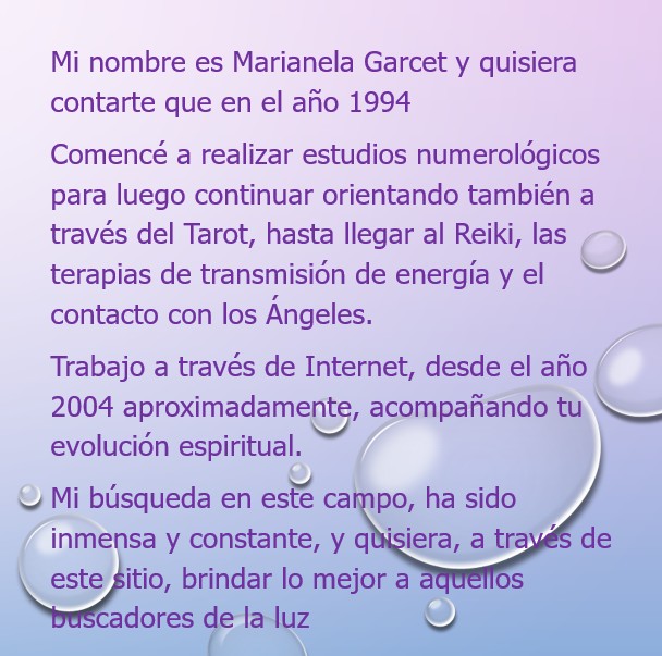 Soy Marianela Garcet y les deseo lo mejor para estas fiestas. Que realmente sean momentos de reflexión y balance, de trazar caminos que nos ayuden a evolucionar espiritualmente.